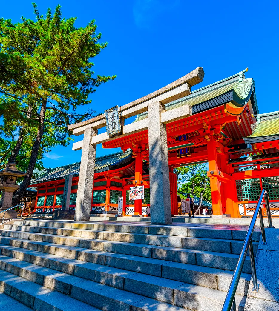 神社建築史上最古の様式の1つといわれる「住吉造」の本殿は、4棟いずれも国宝に指定されています。神功皇后が住吉三神を祀ったものにはじまり、やがて神功皇后ご自身も御祭神として祀られるようになりました。1,800年もの歴史を持つ、全国に約2,300社ある住吉神社の総本社です。