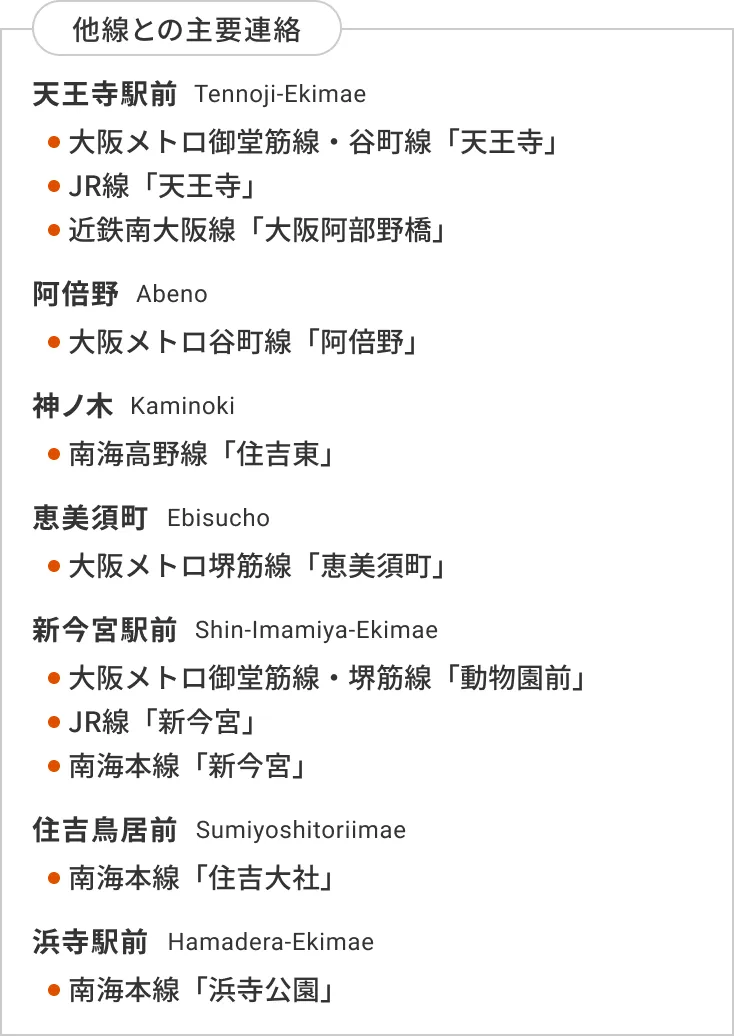 - 大阪メトロ谷町線「阿倍野」